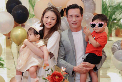 她在微博晒出老公和两个孩子为她庆生的照片,一家四口同框,幸福...
