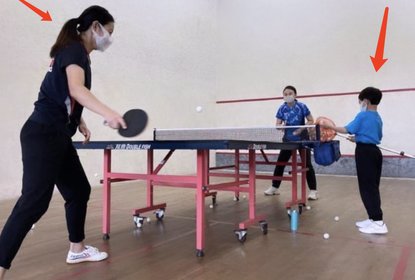 霍启刚在个人社交平台上分享了和郭晶晶及儿子一起打乒乓球的照片...