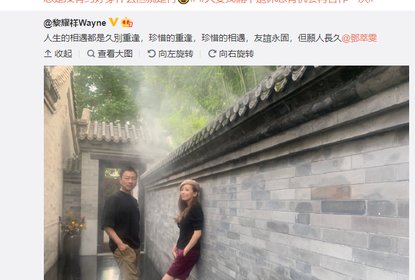 黎耀祥晒出与邓萃雯同框合照,并配文:“人生的相遇都是久別重逢...