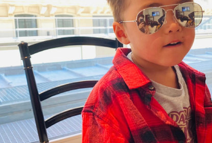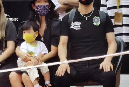 昆凌在ins晒出儿子罗密欧的正面照,照片中罗密欧学爸爸周杰伦的...
