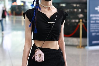 希林娜依·高现身北京机场,allblack穿搭化身酷girl,露小蛮腰气...