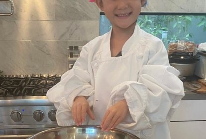 陈冠希在社交平台晒出4岁女儿Alaia体验当厨师的照片。照片中,Al...