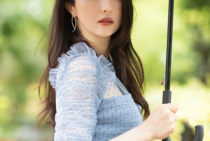 董璇的一组初秋写真曝光。董璇身穿雾霾蓝波点纱裙气质优雅清冷,...