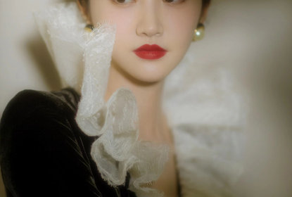 景甜复古赫本风造型大片释出,白纱丝绒长裙优雅别致,搭配红唇珍...
