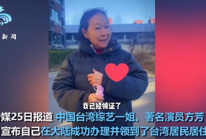 继台湾“情歌天后”千百惠上个月晒出自己的大陆居民身份证之后...