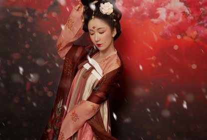 娄艺潇一身唐式汉服出席时尚红毯活动。妆容也同样大胆采用面靥、...