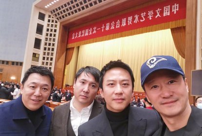 黄渤在微博晒出参加第十一次文联代表大会的照片。照片中,他与吴...