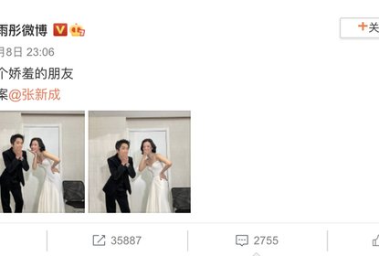 周雨彤在微博更新两张与张新成的合影,配文“两个娇羞的朋友”,还...