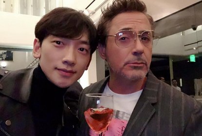 韩国艺人Rain在社交平台上传了照片,与好莱坞演员小罗伯特·...