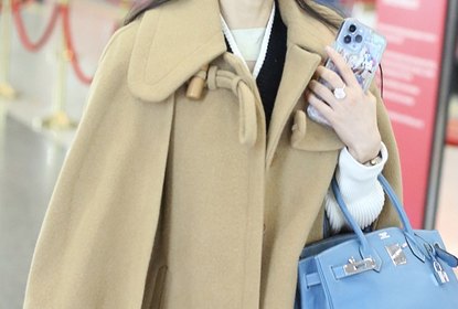 黄圣依现身机场,她身穿咖色斗篷搭鱼尾裙摩登精致,脚蹬漆皮长靴...