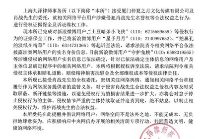 上海九泽律师事务所发表声明称近期网络上散布的肖战[微博]恋...