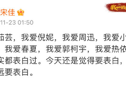 凌晨,宋佳连发多条微博表白周迅、倪妮、小S等女星,称女生永远...
