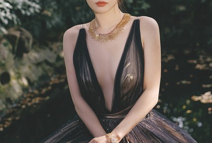 张嘉倪亮相时尚活动,并拍摄造型写真。她穿深V礼服秀婀娜身姿,...