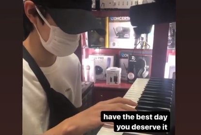 张智霖袁咏仪儿子张慕童在个人社交平台转发好友拍摄的自己单手弹...