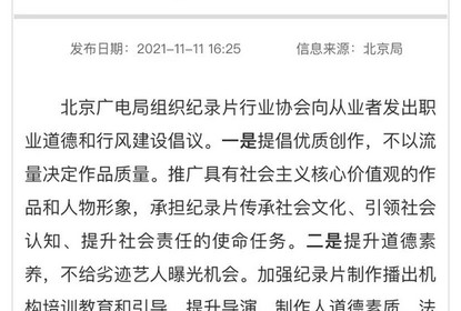 据国家广播电视总局网站消息,北京市广播电视局日前组织纪录...