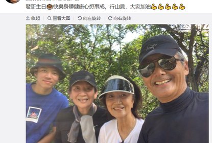 演员马海伦在微博发文为周润发庆生,并晒出与发哥一同爬山的合照...