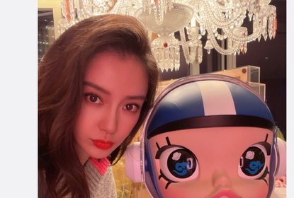 Angelababy在微博晒出与Molly的合照,配文:“来了个朋友,眼睛比...