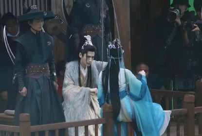 《长月烬明》路透照曝光,罗云熙穿淡黄色戏服外搭披风,古装造型...