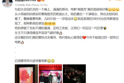 何超莲在微博晒出自己看完电影《梅艳芳》的观后感,表示:“勾起...