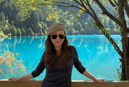 邓萃雯在微博晒出上个月游九寨沟的照片,并配文大赞景色似人间仙...