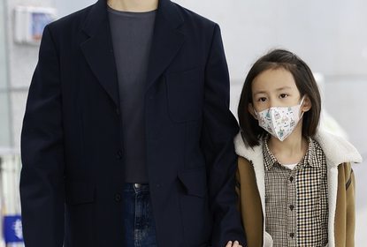 黄磊、孙莉带小女儿黄少艾现身上海机场,孙莉顶复古黄发色搭西装...