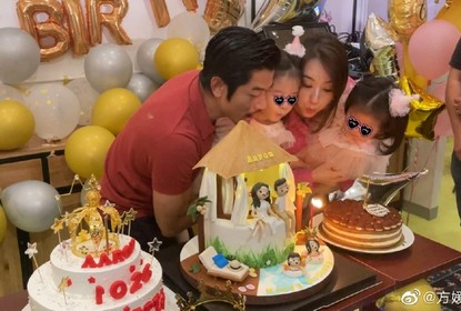 郭富城56岁生日,方媛在微博晒出和两个女儿一同为他庆生的照片,...
