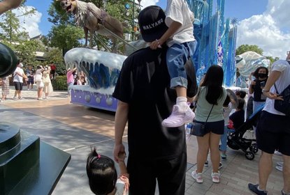 陈赫在个人社交媒体上分享自己和两个女儿在迪士尼度假时的背影照...