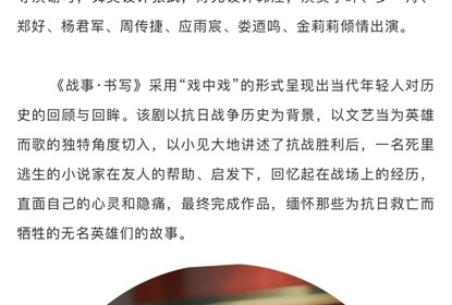 中国国家话剧院宣布原创话剧《战事·书写》正式建组,青年演员罗...