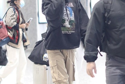 张杰现身机场,戴着棒球帽的他装扮休闲,受伤的手指用白棉布包扎...