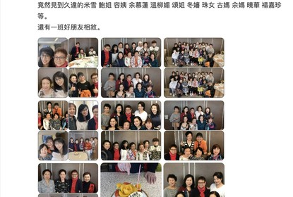 香港资深传媒人汪曼玲在微博晒出一组老友聚会照,众星齐聚一堂为...
