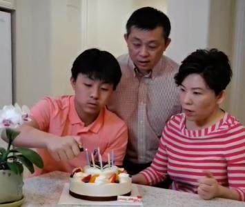 3月6日,是邓亚萍15岁儿子林瀚铭的生日,她晒出了一家人切蛋糕的