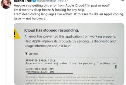 据外媒报道,iCloud的一个代码漏洞似乎让一位作者无法访问她的账
