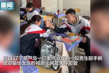 日,辽宁葫芦岛一位老师分享的一段男生掰手腕故意输给女生的视频