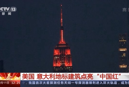 这两天,美国纽约和意大利米兰的地标建筑上亮起“中国红”,表达着