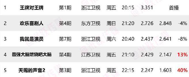 如今,关于上周末综艺收视率的排名情况正式出炉,随着《王牌对王