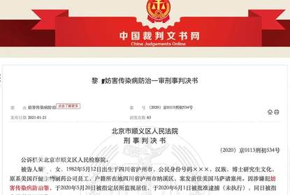 2020年3月,北京市通报了1例输入性病例黎某:其在美期间已出现发