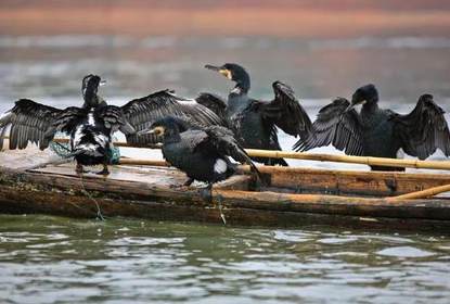 伴随着一声声特殊的吆喝,一只只大鸟潜入水中,等到它们再出来时