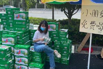 14日,杭州一女生中奖1吨饮料在小区免费发给小朋友走红网络。据...