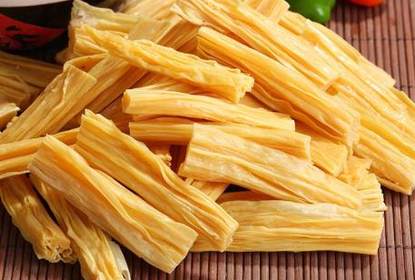 腐竹烧肉的做法: 备用食材:五花肉100克,干腐竹5根,盐适量
