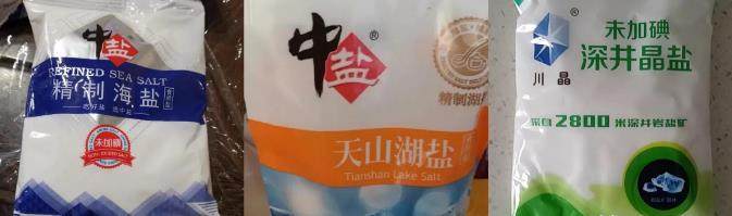 1、看盐包装袋的名称 现在市面上出现了各种品样的食盐,价格