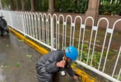 25日,台风“烟花”裹挟风雨而来。在上海闵行区莘庄工业区新源路鑫
