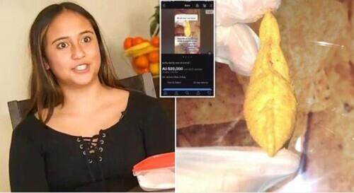 国外一名女孩在吃薯片时,发现一个薯片的形状有点奇怪,她有点意