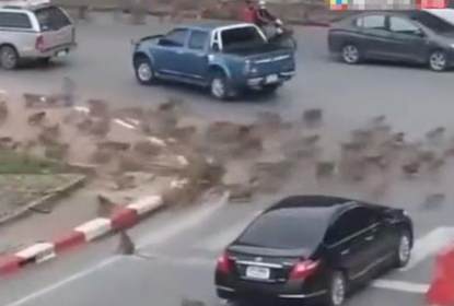 泰国数千只猴子在华富里府街头分成两派“火拼”。媒体称猴子身后司