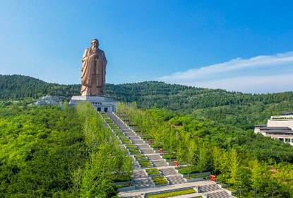 孔子圣像位于尼山圣境主轴线最北端的一处高地之上。圣像坐北朝南