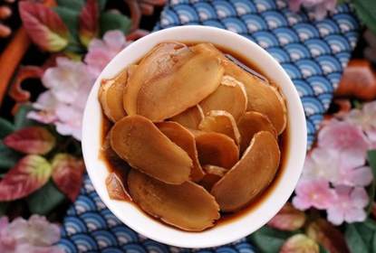 【醋泡姜】 所需食材:生姜和醋。两者没有固定用量的要求,以