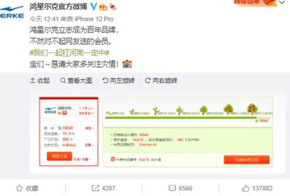 话题“鸿星尔克的微博评论好心酸”突然登上微博热搜第一,截至目前