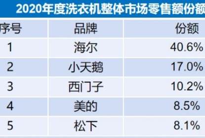 2020年,洗衣机市场出现明显的下滑。零售额同比下降14.4%,零售