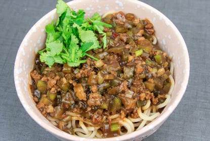 【炸酱面】1.处理食材:西芹一颗撕掉老筋,清洗干净以后破成