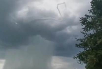 江西上饶铅山县湖坊镇出现“龙吸水”。目击者陈先生介绍,龙卷风下