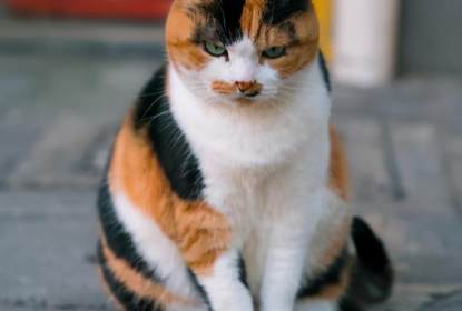 三花猫 三花猫就是身上有黑、红(橘)和白三种颜色的猫,故名